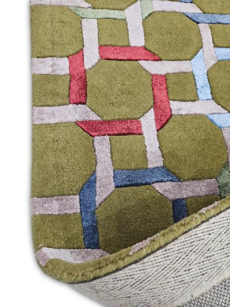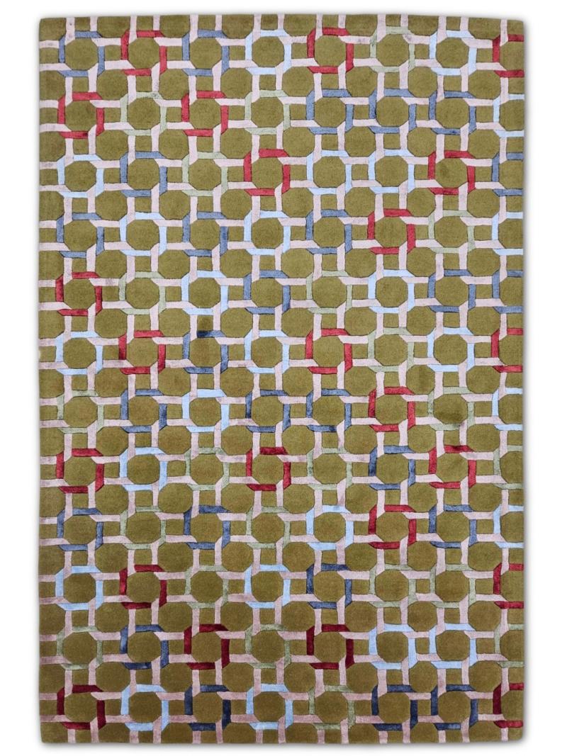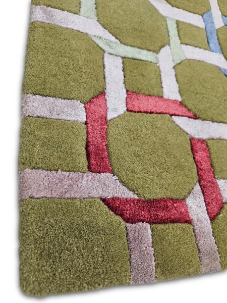 Hand Tufted - Olive Green, Navy & Sky Blue, Pale Pink and Taupe.