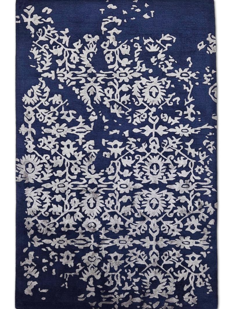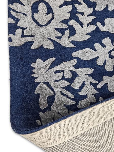 Hand Tufted - Royal Indigo and Soft Ivory Pearl Grey.